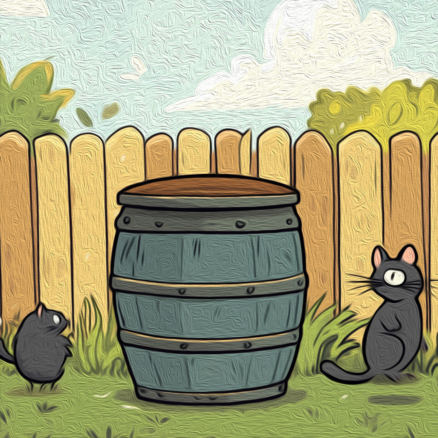 In Picture on Picture, Mari Fitzpatrick captures the lively interplay of nature and imagination through a vivid cat-and-mouse chase by a rain barrel. Blending humor and reflection, she contrasts the raw vitality of the pursuit with the serenity of a garden setting. The piece evolves into a poetic exploration of movement, tension, and the delicate balance of life in its fleeting moments.