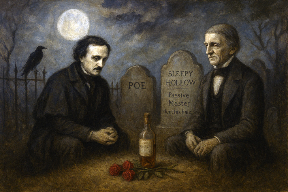 In “Dead Grass-Old Poets," Michael Lee Johnson resurrects two literary titans - Poe and Emerson - and sets them wandering through a surreal afterlife where memory fades, wit endures, and even ghosts grow weary. Through vivid, ironic imagery, the poem becomes a contemplation of genius stripped of grandeur: of how great minds, once full of thunder, settle into the soft hum of mortality. It is at once elegy, satire, and séance -- a poetic encounter where reverence and rebellion meet beneath the same pale sky. |